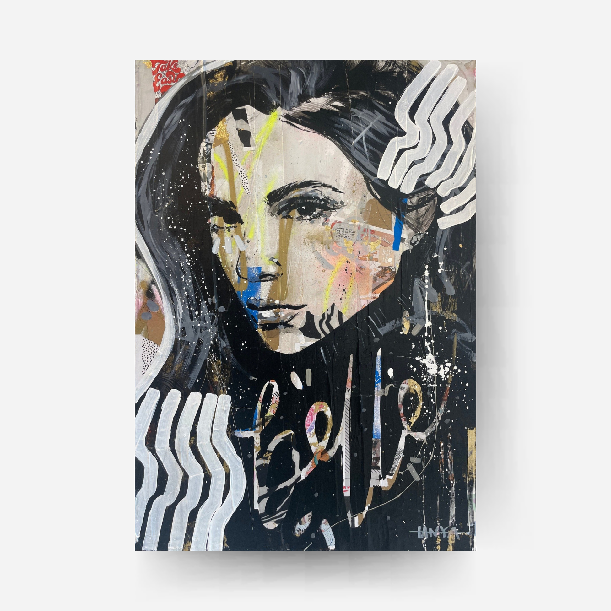 Beautiful and bold mixed media on canvas with gold leaf 36x24"
