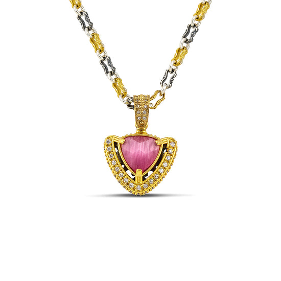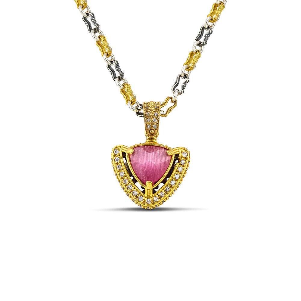 Inverted Triangular Cat Eye Pendant Necklace with Two-Tone Chain M165