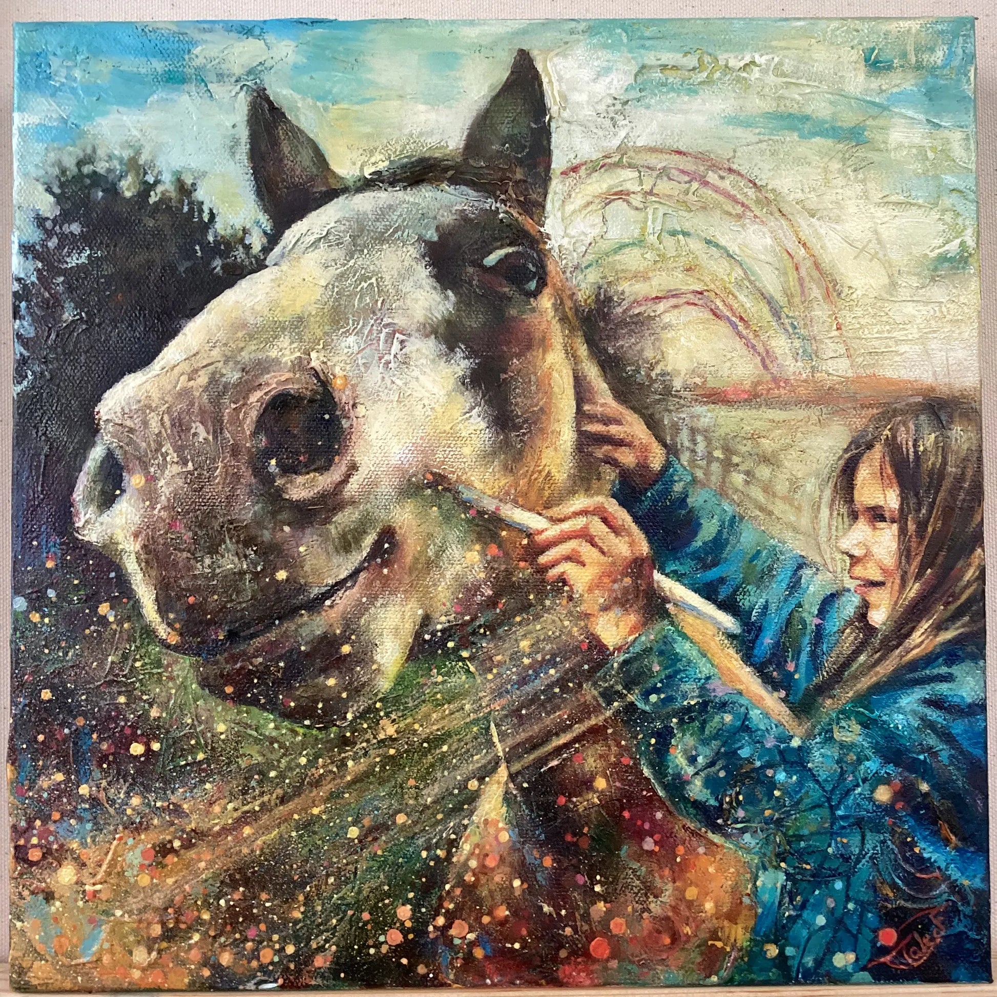 Mixed media: modeling paste, alcohol ink, acrylic, oil 12x12" by Talitha Falconero