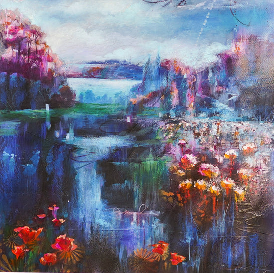 Led by Pioneering artists Elli and Dimitra Milan, the Milan Art Decor team created this beautiful painting harnessing the spirit of collaboration. With anywhere between 2-5 sets of artist hands leaving their mark on this painting it carries a presence that can only be achieved by the multitude.