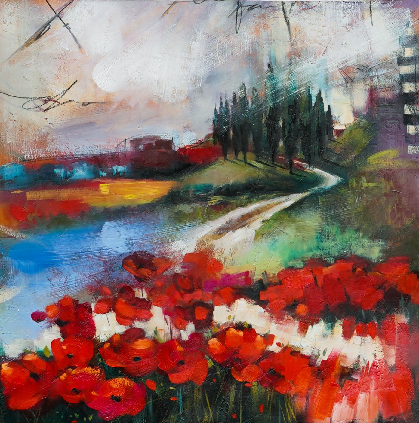 Led by Pioneering artists Elli and Dimitra Milan, the Milan Art Decor team created this beautiful painting harnessing the spirit of collaboration. With anywhere between 2-5 sets of artist hands leaving their mark on this painting it carries a presence that can only be achieved by the multitude.