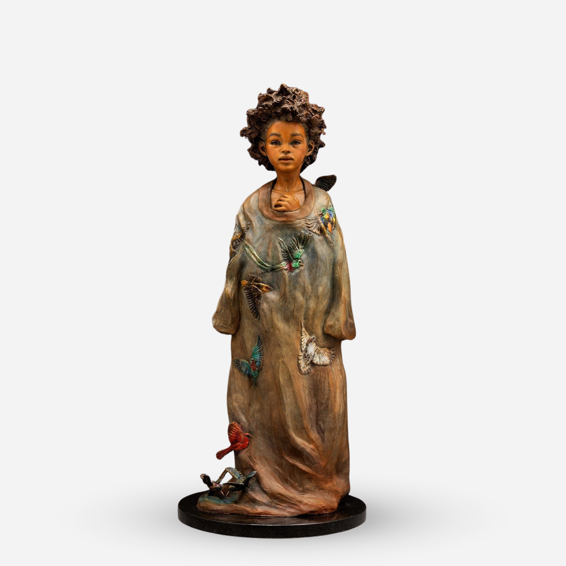 She curiously observes life as it swirls all around her, like the many different birds of the world taking flight all at once.