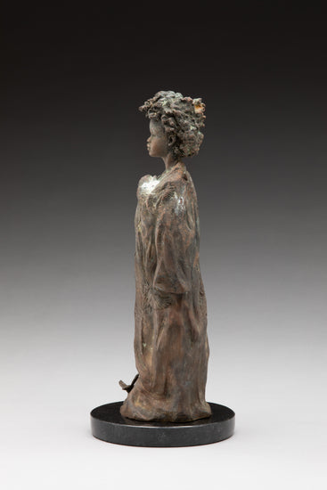 This bronze sculpture tells one of the most powerful stories of any art piece we’ve ever seen.  The display was recovered by rescue divers one week after the Lahaina wildfires and sent back to Angela Mia to have the patina sealed with clear coat & be fitted with new marble base.  You can see her journey through fire, water and now risen from the literal ash.