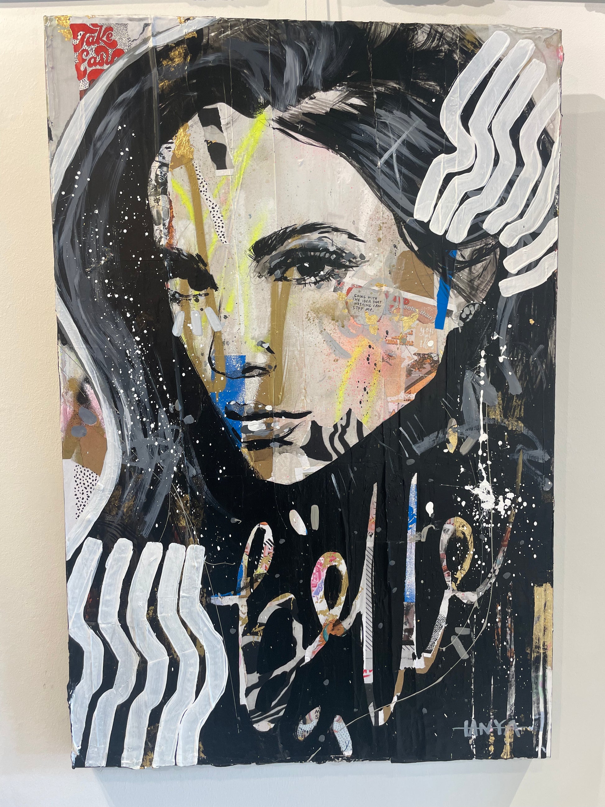 Beautiful and bold mixed media on canvas with gold leaf 36x24"