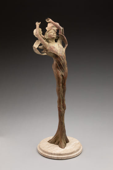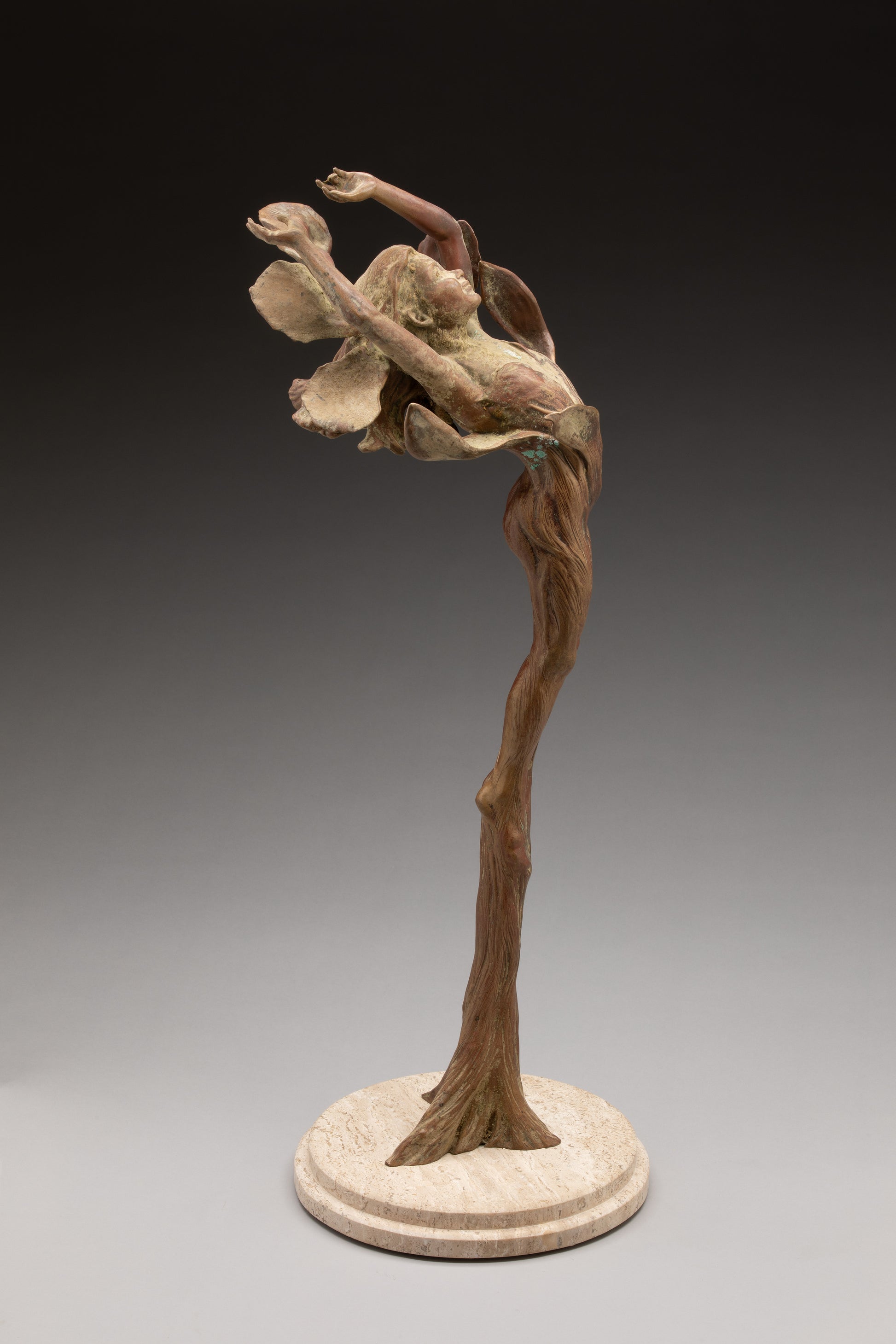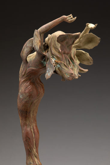 This breathtaking bronze tells a story that brings joy out of despair. The bronze display was recovered from the wyland gallery in Lahaina Maui and recovered by rescue divers one week after the fire took the gallery and the entire town. It is one of the only things to survive this historic event. You a still see coral and algae formations on her pedals which the artist preserved by sealing her with a clear coat, and fittings her with new marble base.