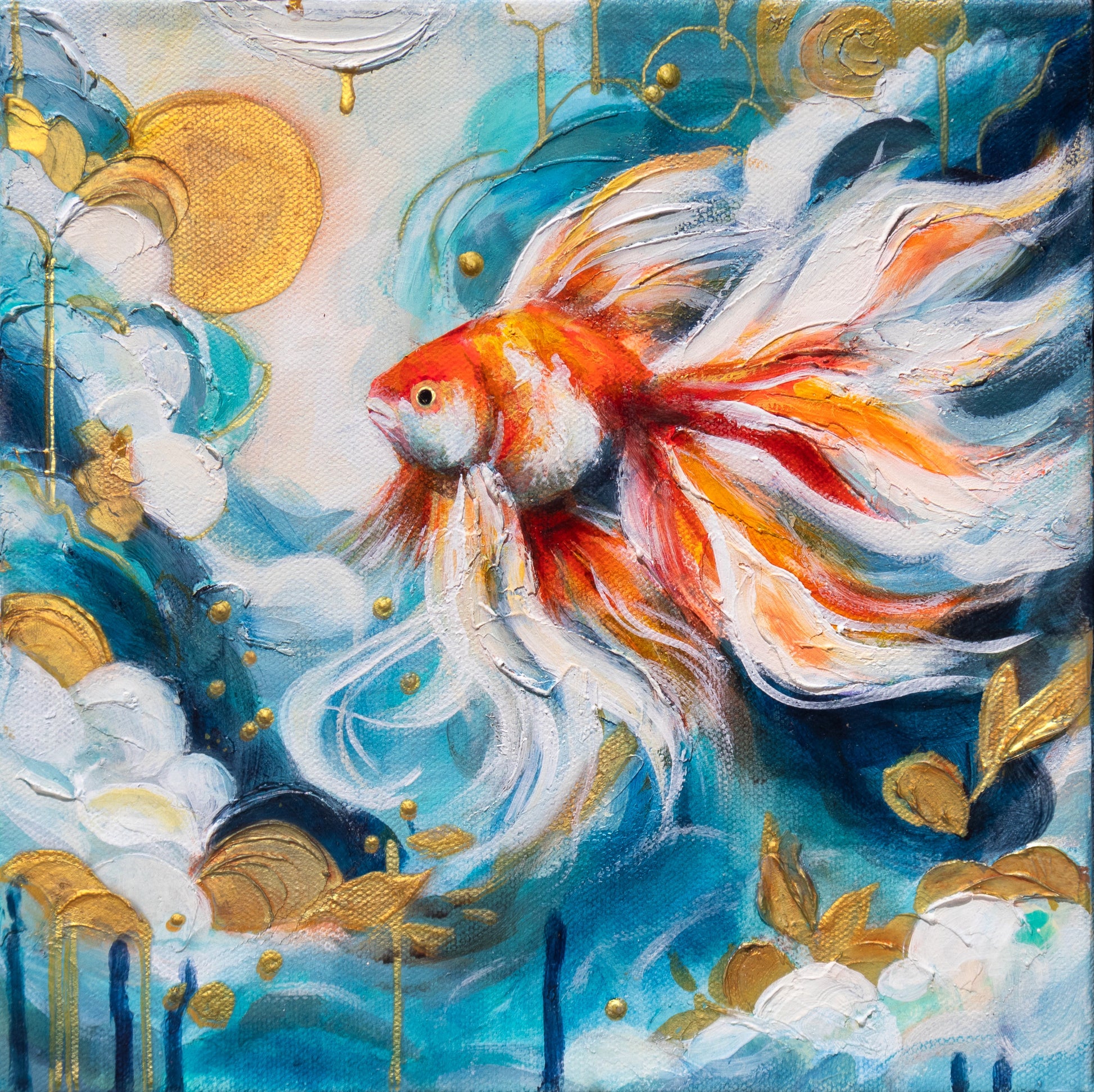 This series of fish paintings, inspired by the fleeting nature of memory, explores themes of connection, impermanence, and resilience. The fish, with their vibrant colors and delicate movements, symbolize the temporary nature of life's challenges—an idea that feels especially resonant in today’s fast-paced world. Just as fish are said to have a 10-second memory, these paintings serve as a reminder that our worries and struggles are often just as brief when viewed in the grander scheme of life. Each piece reflects a moment of grace and harmony within the currents of existence, encouraging viewers to embrace life’s ebbs and flows with peace and acceptance. Submitting this series for the small-scale show holds special meaning for me because it allows these ideas to be shared with a wider audience. In creating these pieces, I sought to bring beauty and reflection into small, intimate works that invite connection and contemplation. I hope these paintings resonate with viewers, offering a sense of solace and reminding them of the transitory nature of both joy and struggle. Being selected for this show would provide the opportunity to share these deeply personal themes, while also honoring the potential of art to uplift and inspire.