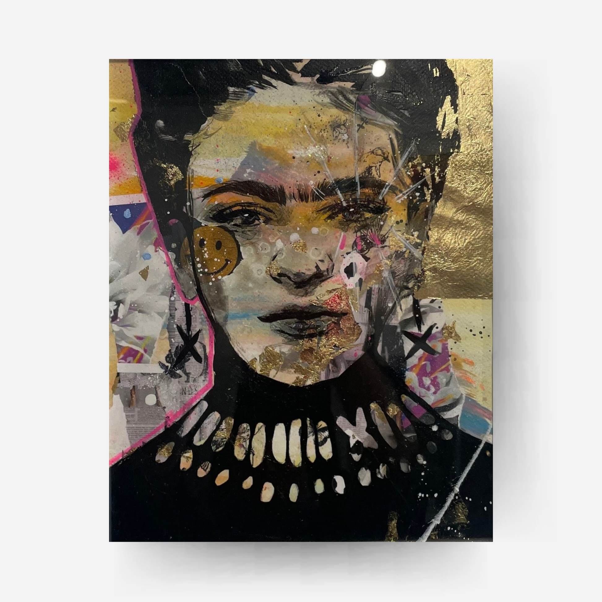 Mixed media / gold leaf original  With custom frame from  Tanya Aubut - part of her “Divas of the Louvré” collection