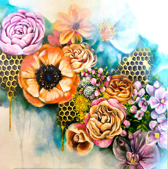 My process brings together a mixture of inks, pens, acrylics and oils providing depth. Each step brings me joy, from the fluidity of the inks, the structure of the pen, the transformation from the acrylics and the depth and colour the oils bring.