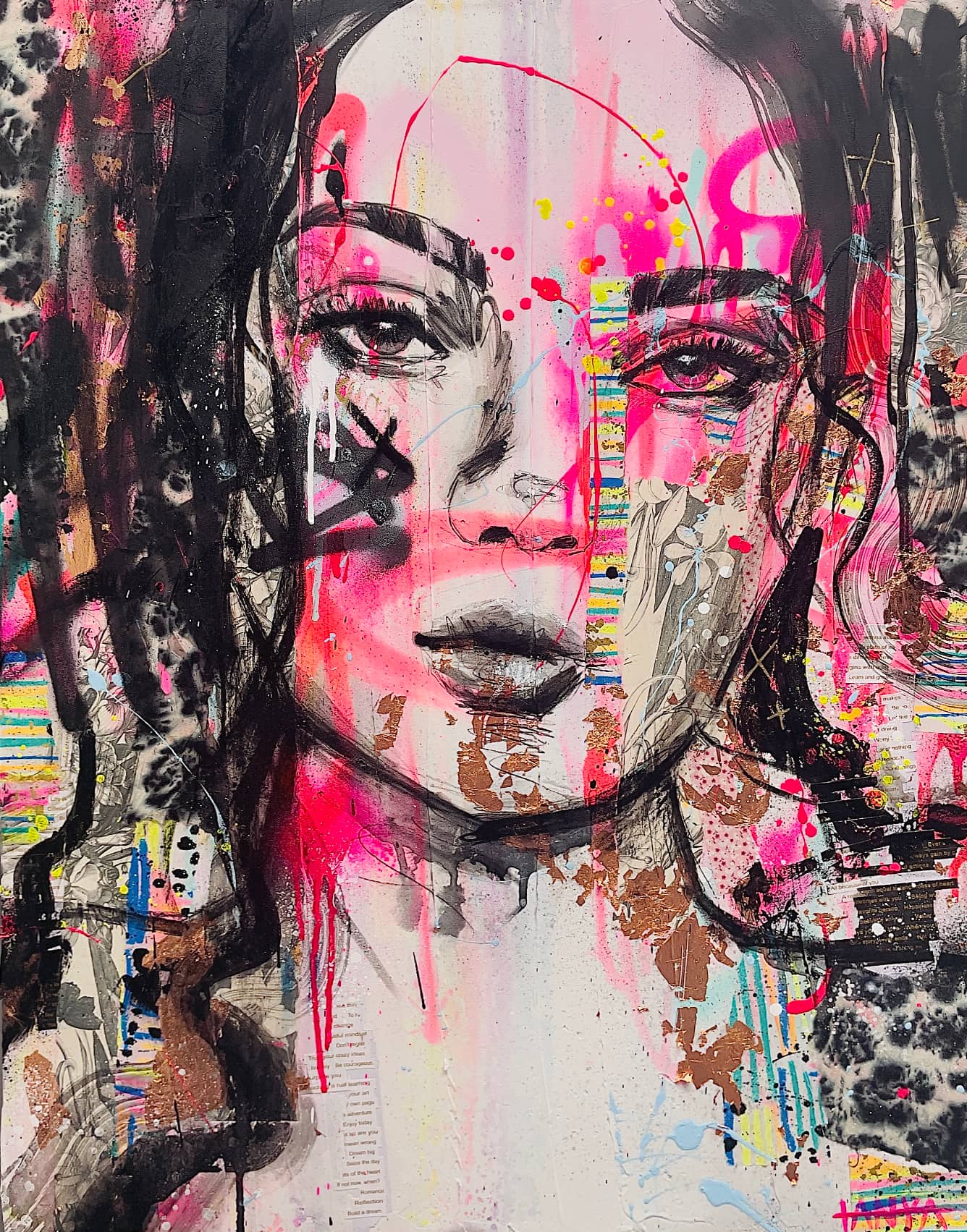 My main inspo for my work is street art and abstract art! I like to create a mess and then refine it with a beautiful portrait! I love the freedom and vibes of street art! I'm always looking for brighter colors and fun marks!