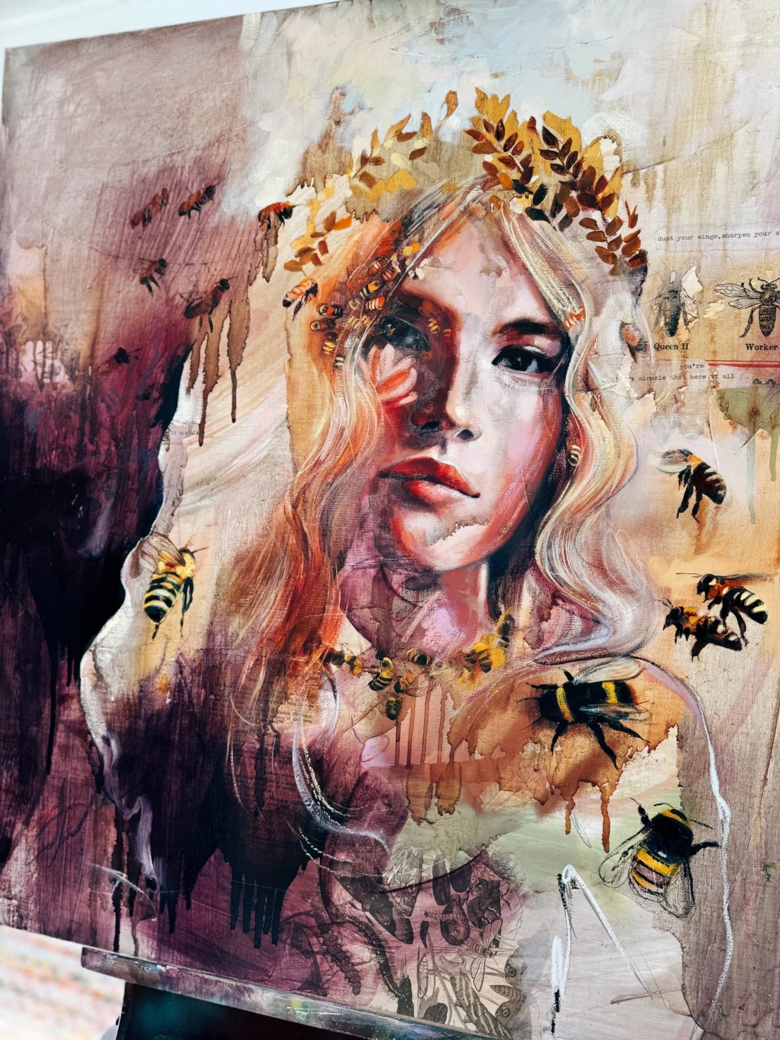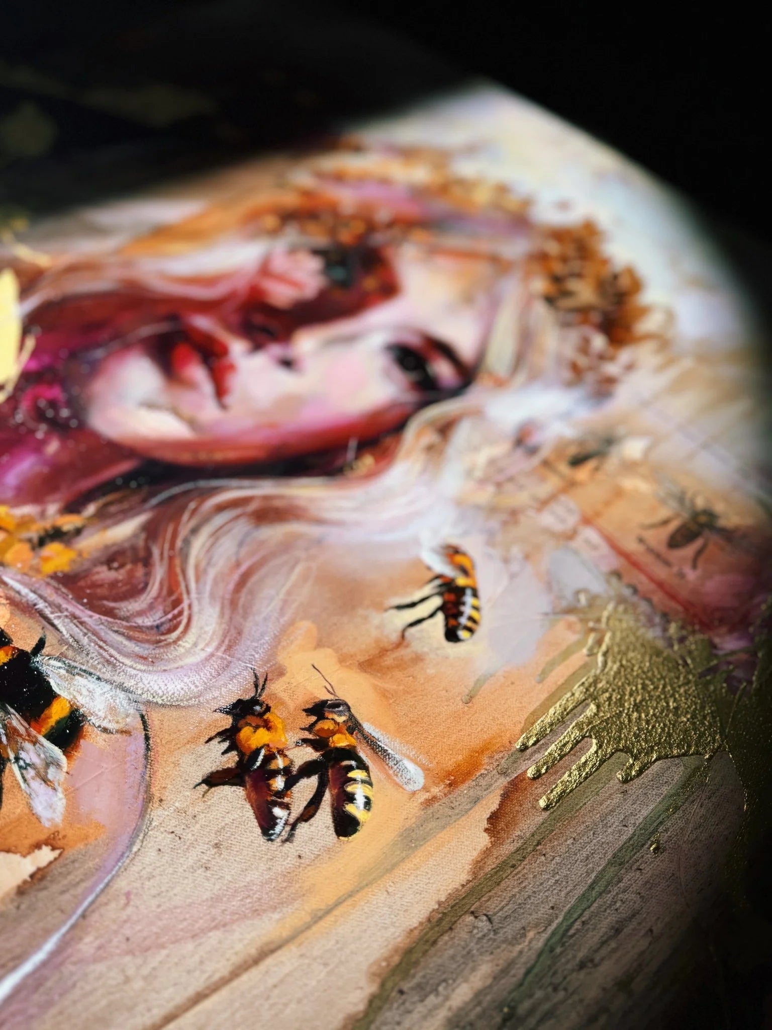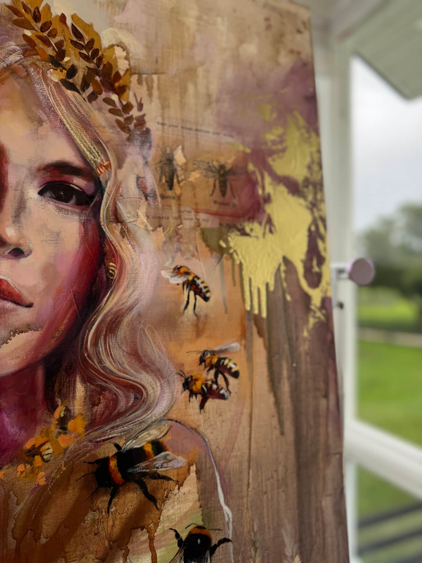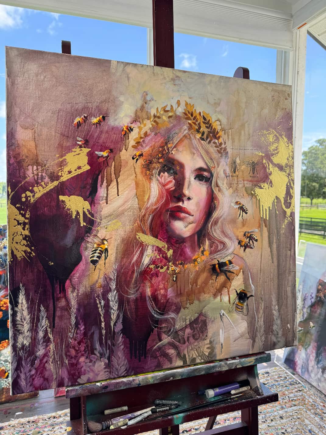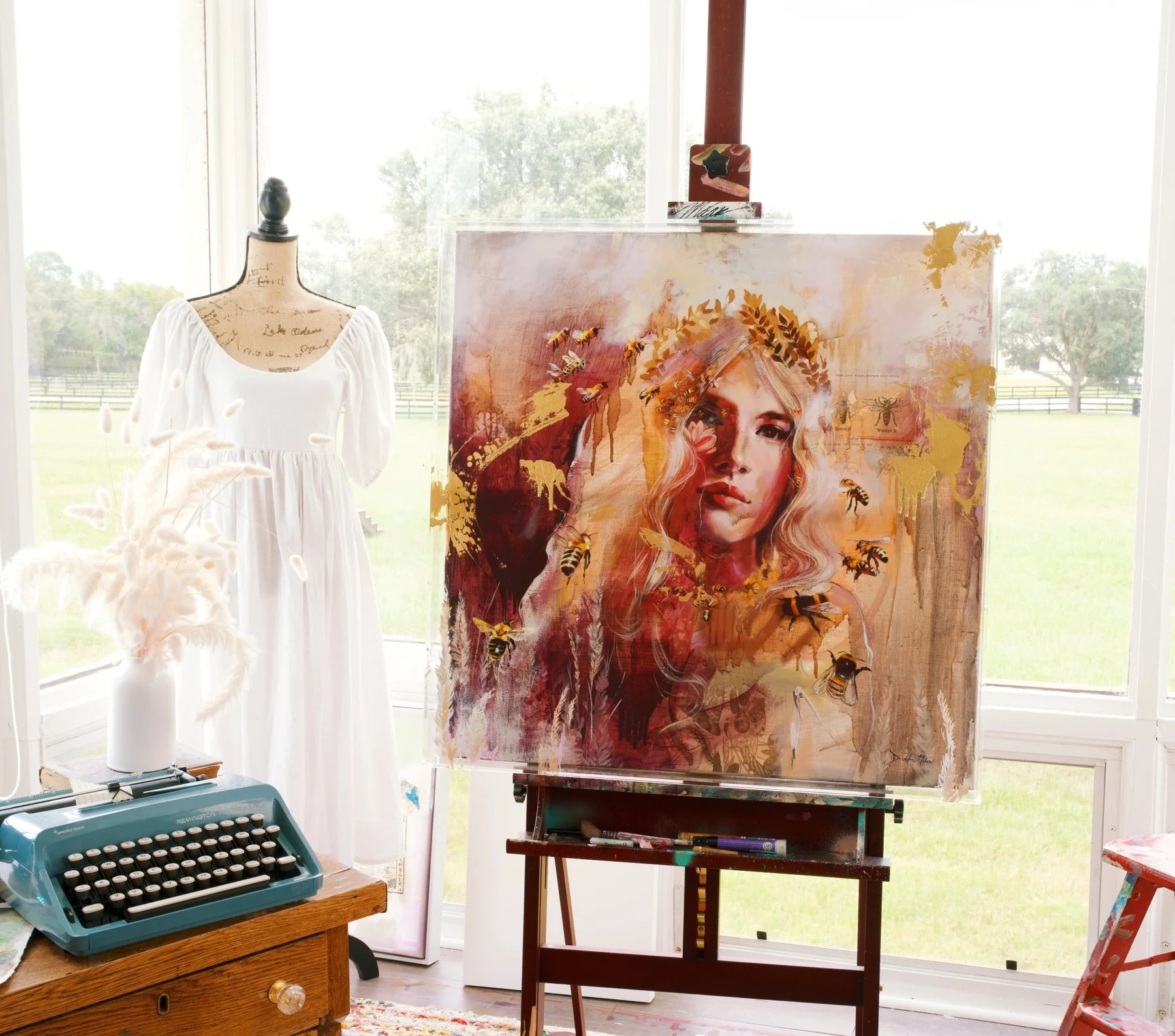30x30in Oil on Linen. Artwork comes in a unique hand-painted plexiglass Wexel frame.