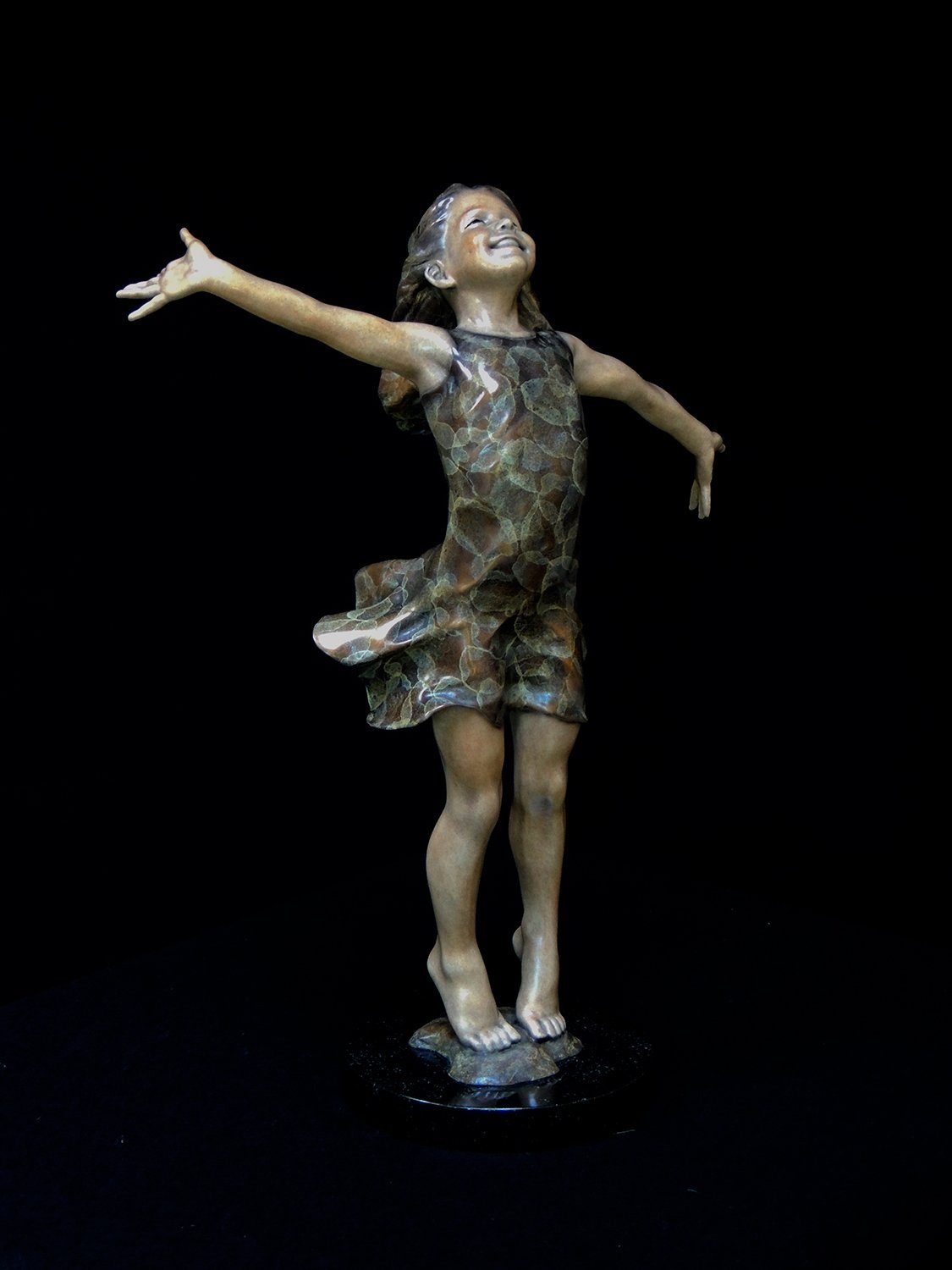 With arms outstretched in an exuberant embrace of life, 'Joyful' embodies the vivacious spirit of a young girl.