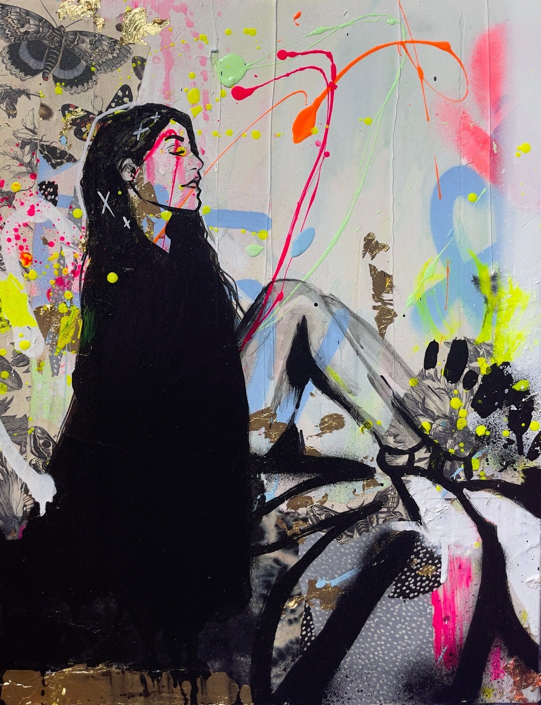 My main inspo for my work is street art and abstract art! I like to create a mess and then refine it with a beautiful portrait! I love the freedom and vibes of street art! I'm always looking for brighter colors and fun marks!