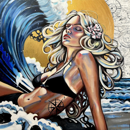 "true North" is my tribute to the timeless beauty and energy of the beach.  This painting has all the feels of the oceans vibrant energy and the endless horizon, symbolizing my journey home.  It's an invitation to share in the personal journey towards finding your own "true north"