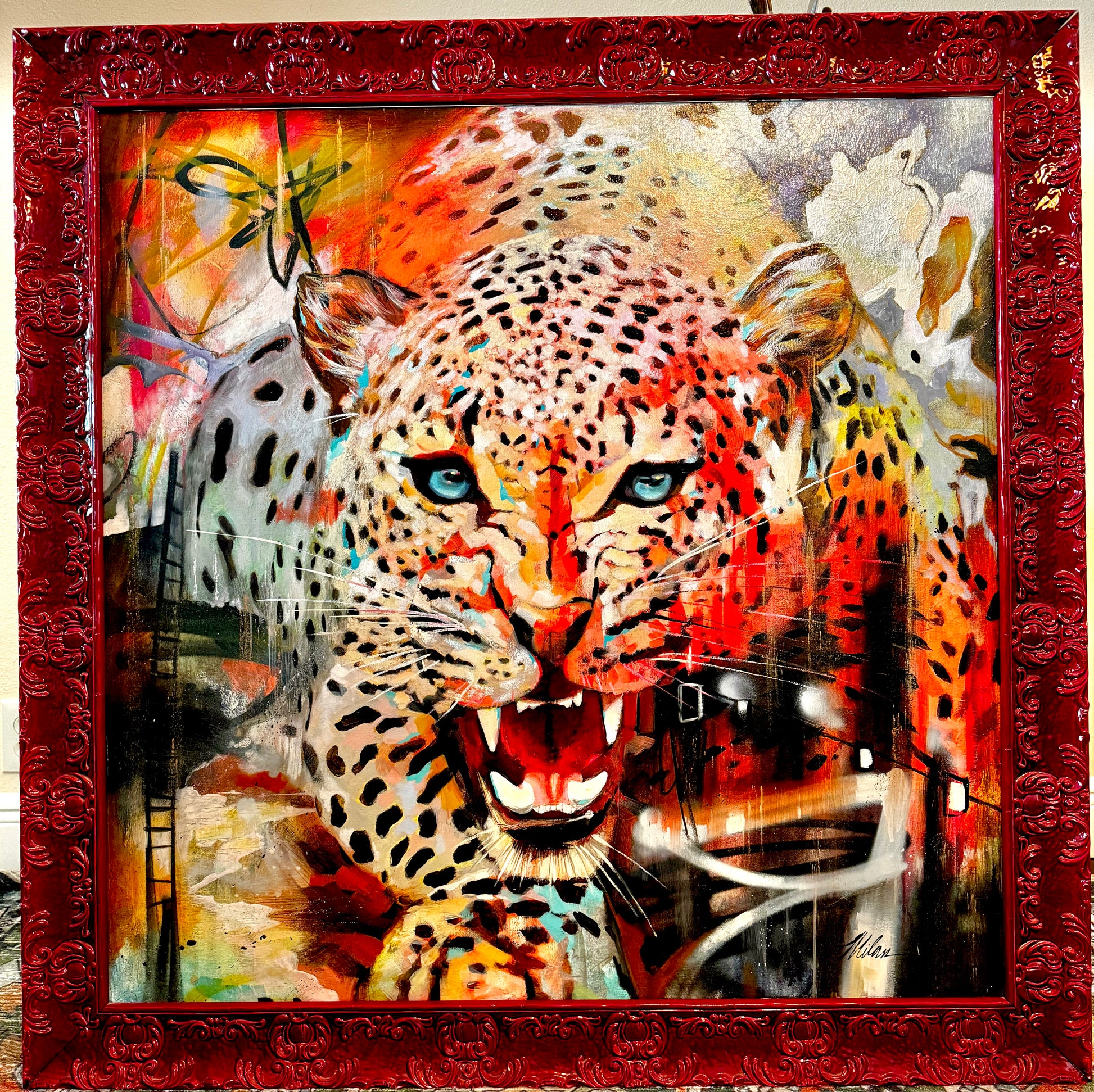40x40” canvas with custom red gloss frame (48x48” total) oil on canvas collaboration between Elli and John Milan