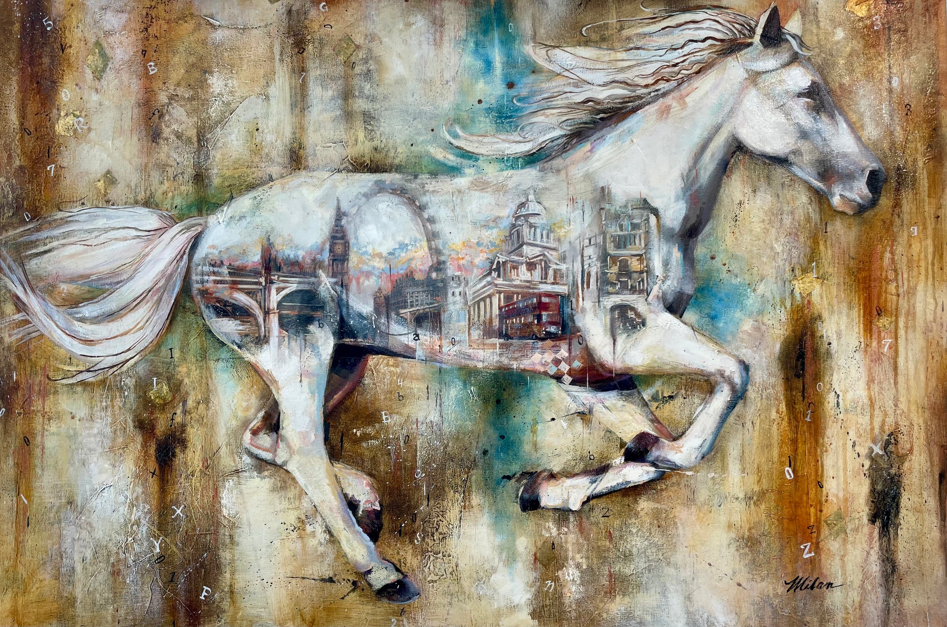 24x36" original mixed media on canvas collaboration by John and Elli Milan