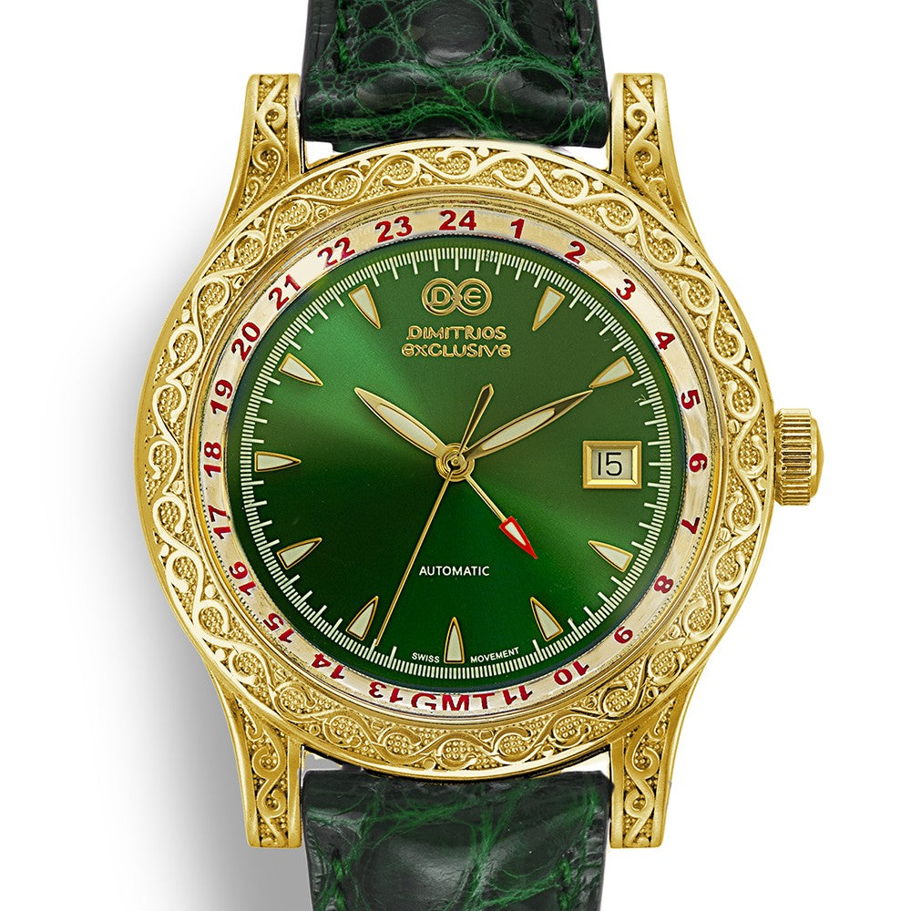 We envisioned and created a jewel to measure time, based on the philosophy of the Dimitrios Exclusive brand , a timepiece with strong personality and timeless value. And for that, we feel nothing but pride. Discover this unique automatic luxury watch that combines striking aesthetics with high mechanical precision. With a 41.5mm silver case and intricately engraved details, this watch exudes elegance and timeless style.