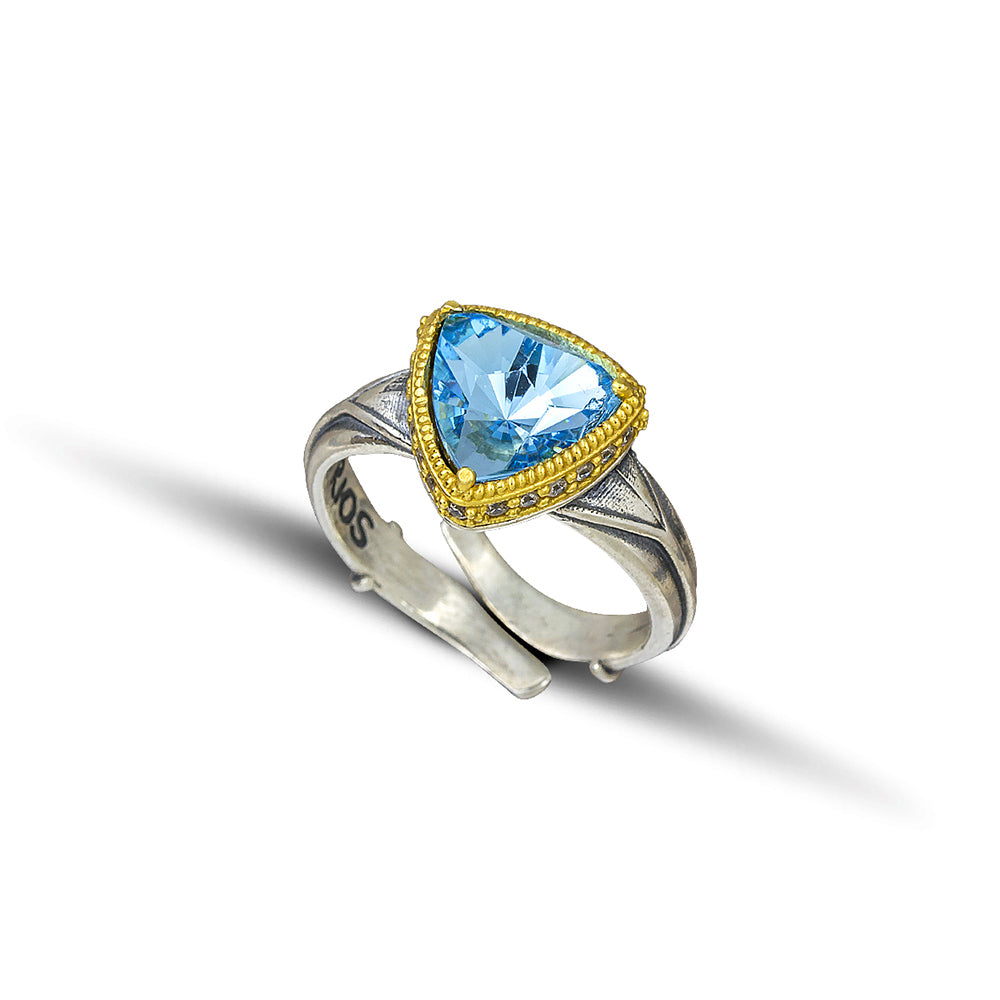 Elegant ring with silver gold plated ornate bezels add style and elegance to your look.