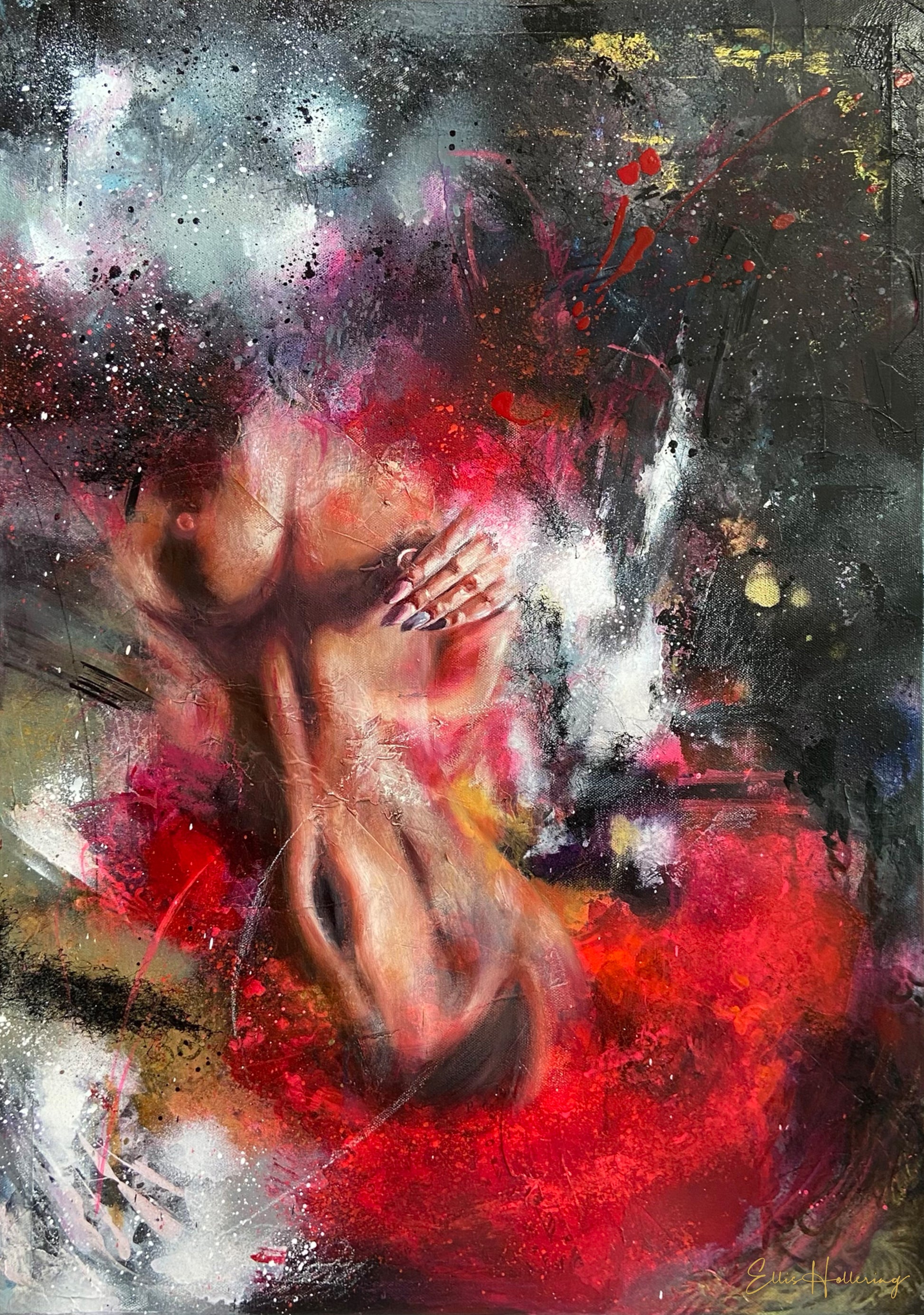 This work of art celebrates the beauty of the graceful female body and the unprecedented complexity that lies within. Every body is different and every body has its unique beauty. This piece is a reminder of how special and powerful the female body is. No matter what challenges we face, we have the power to overcome them and emerge stronger and more beautiful than ever before.
