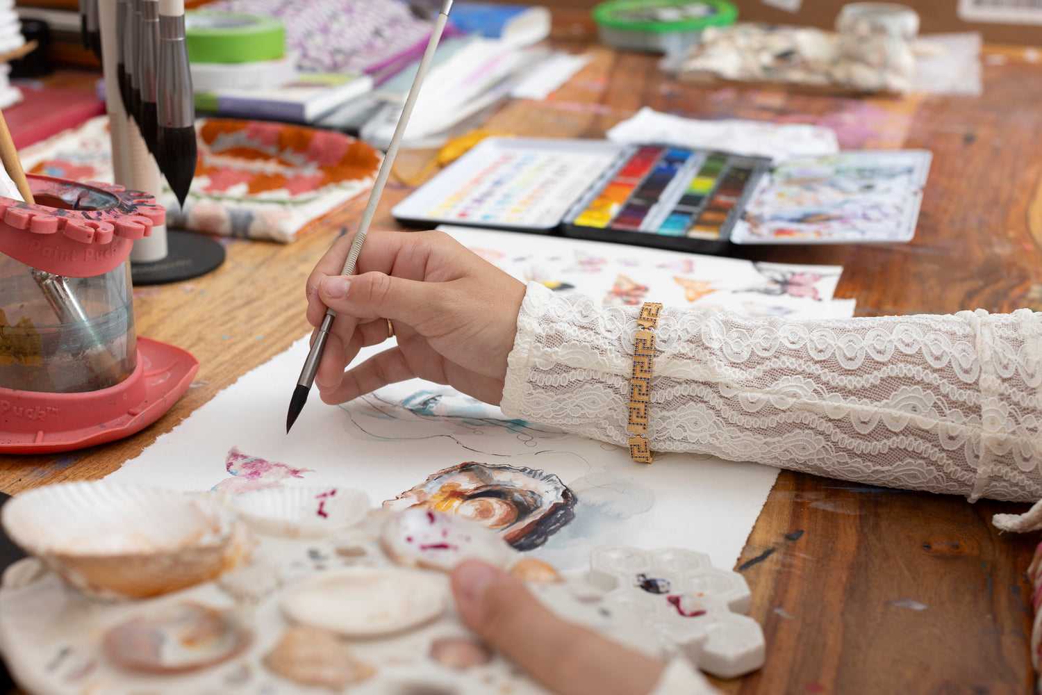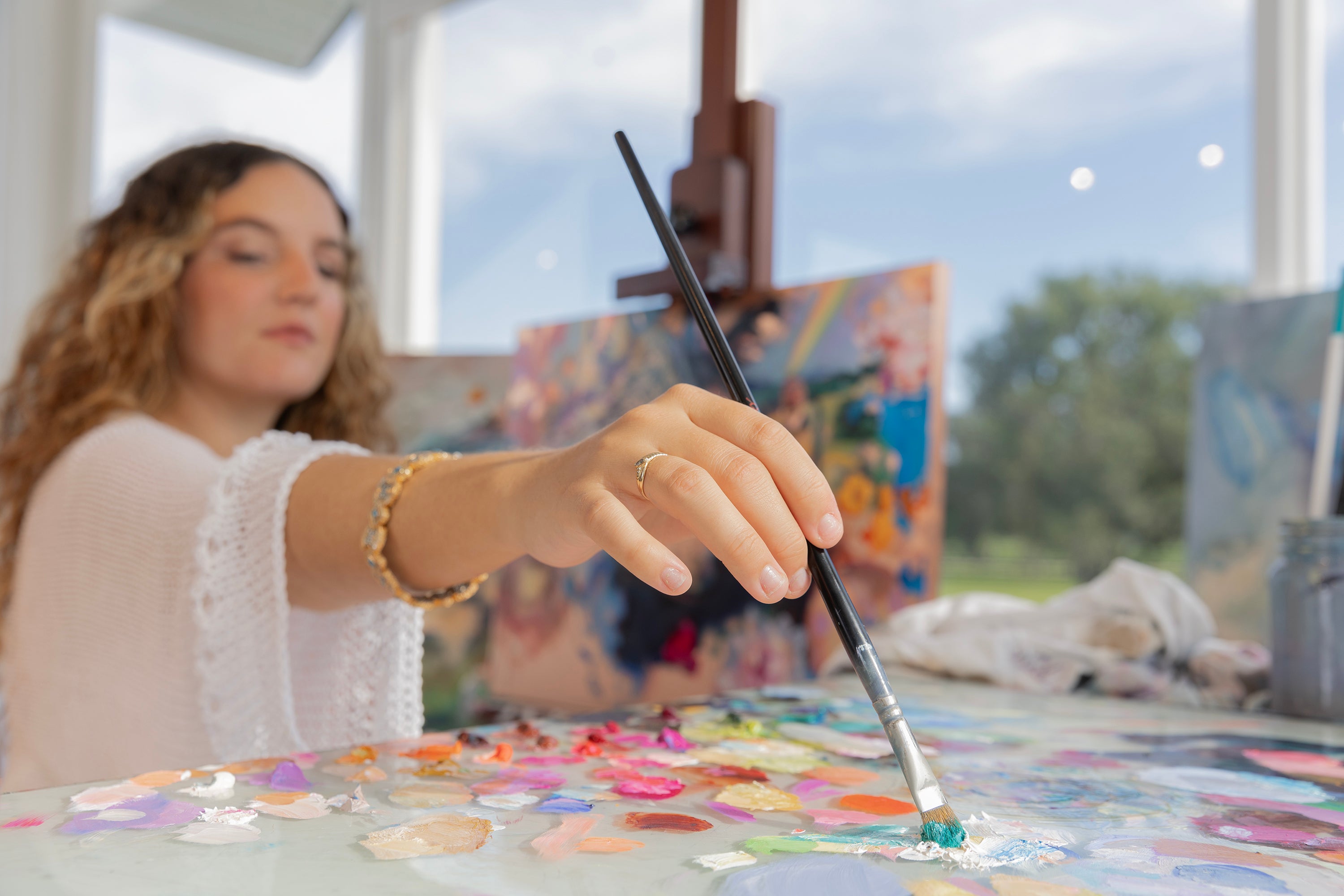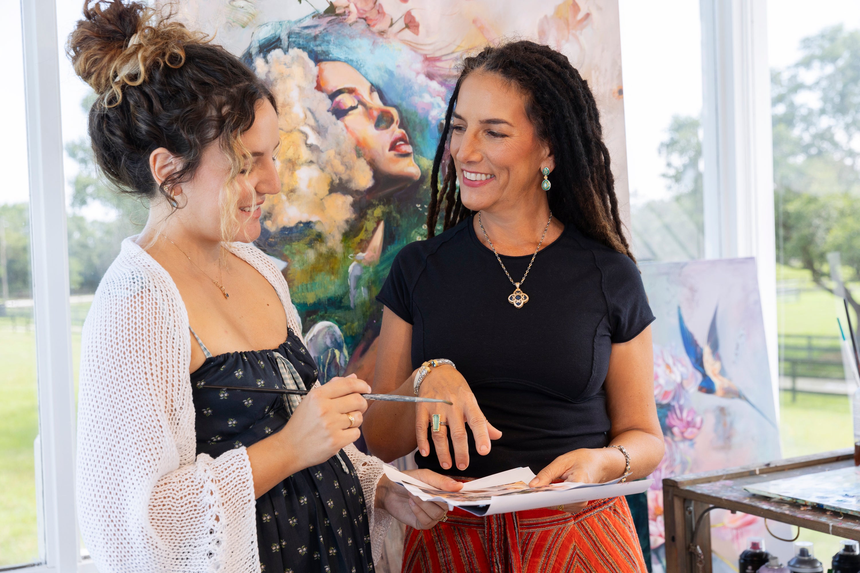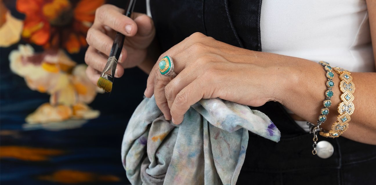 Elli felt each piece she wore made her feel regal and inspired to create when sitting in front of a blank canvas or hosting a gallery event. In 2024 fate made the introduction between Elli and the Dimitrios family by way of a robbery. While hosting an art retreat in Italy Elli had a bag stolen from her car containing all of her best jewelry she had collected over the years! In an effort to buy her collection back piece by piece she was put in touch with Vassilis, part of the founding family and head designer. Through conversation Elli found that despite the many shops, galleries, and boutiques throughout Europe, in the U.S. their collections were only available in Beverly Hills. We are honored to be their flagship location in Florida and feel their art to wear elevates our gallery by inspiring all of the collectors who try Dimitrios on for themselves!